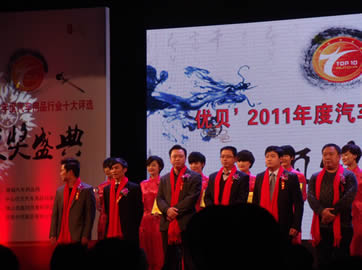 2012年2月13日,由慧聰網(wǎng)主辦,由中國汽車工業(yè)協(xié)會、中國汽車工程學(xué)會、中國汽車流通協(xié)會、中國國家標(biāo)準(zhǔn)制定委員會、中國汽車工業(yè)咨詢委員會、全國汽車服務(wù)高科技產(chǎn)業(yè)化委員會、廣州市汽車配件用品行業(yè)協(xié)會、河南省汽車用品業(yè)商會、哈爾濱汽車用品服務(wù)業(yè)商會、安徽省汽車用品行業(yè)商會、湖南省汽車用品行業(yè)商會、上海市工商聯(lián)汽車配件及用品業(yè)商會、北京汽車用品商會、中國電子商會汽車電子專業(yè)委員會協(xié)辦的汽車用品“奧斯卡”--2011年度(第八屆)中國汽車用品行業(yè)十大評選頒獎盛典在北京釣魚臺國賓館盛大舉辦。