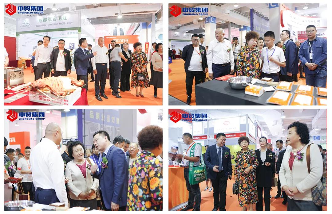 展會現(xiàn)場火鍋產(chǎn)業(yè)相關協(xié)會領導在中貿(mào)國際會展集團董事長杜磊先生陪同下觀看我們展會的精美展品。