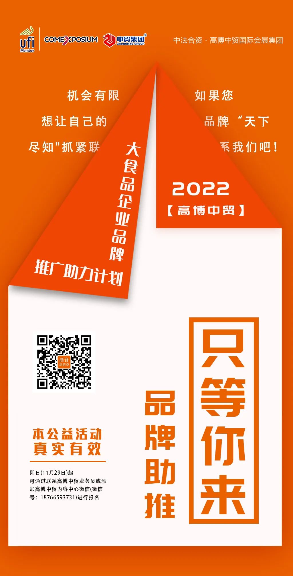 本次助力計(jì)劃全程免費(fèi),無(wú)任何任何后續(xù)、附加收費(fèi)項(xiàng)目。拒絕山寨、假冒偽劣等一切不合乎法律、道德的企業(yè)、品牌、產(chǎn)品。同時(shí),在報(bào)名參加助力計(jì)劃的企業(yè)中,高博中貿(mào)國(guó)際會(huì)展集團(tuán)將選擇兩家企業(yè)或品牌,為其免費(fèi)量身打造“2022年度品牌宣傳計(jì)劃”,更深入、全面、立體的對(duì)企業(yè)進(jìn)行原創(chuàng)文章等多手段品牌宣傳。